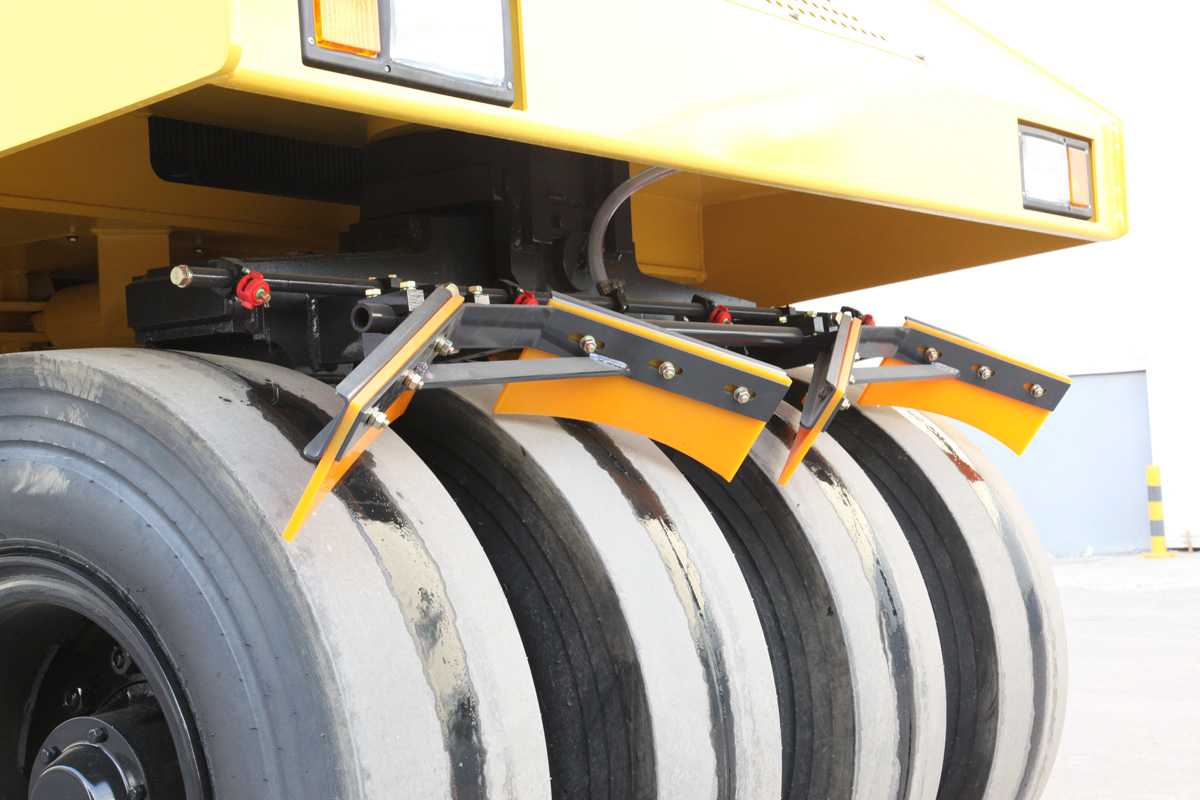 La configuration unique à 4 pneus à l'avant et 5 à l'arrière assure une couverture complète et le fameux « malaxage » des rouleaux pneumatiques. Cette action scelle efficacement la surface, augmente sa densité et empêche l'arrachement du matériau lors du compactage de l'asphalte.